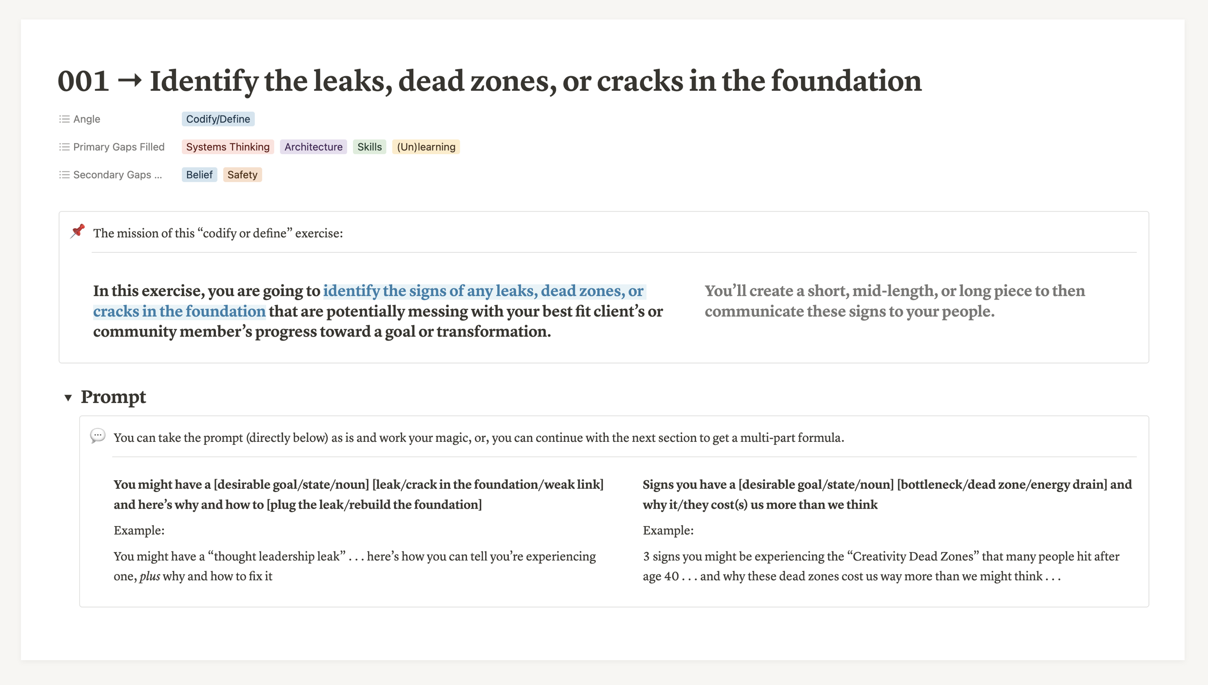 Each week (for 52 weeks), you will receive a new prompt, formula, and guided writing exercise to help you create bold, perspective-shifting work. You can publish your pieces as essays, short-form videos, SEO articles, YouTube videos, books, audio courses, emails, and more.
