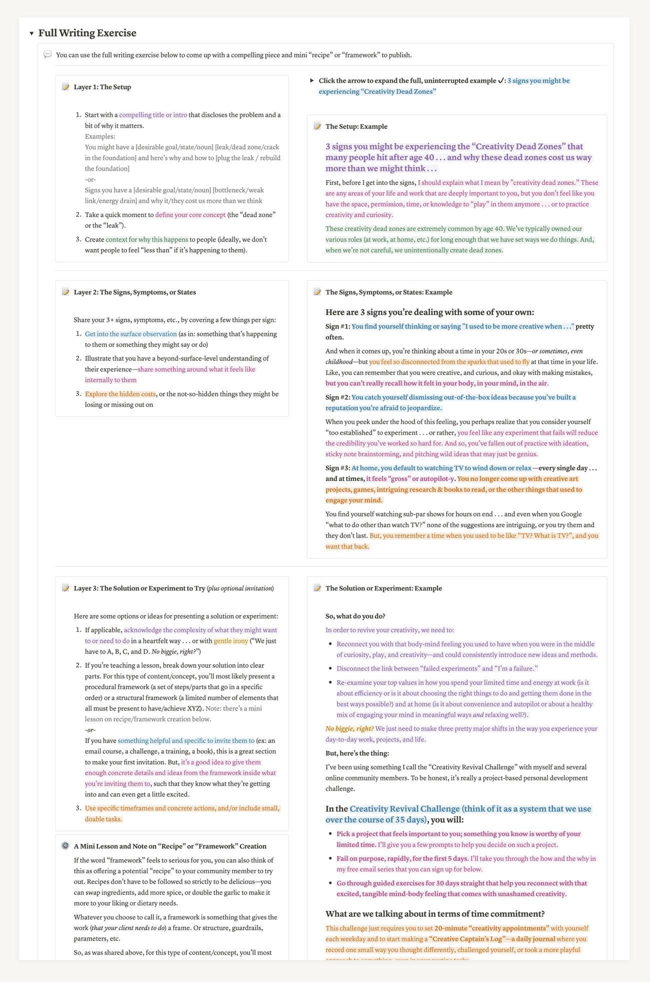 #3: You’ll get both a guided writing exercise for a long-form, evergreen piece and at least one fully written example to follow along with.