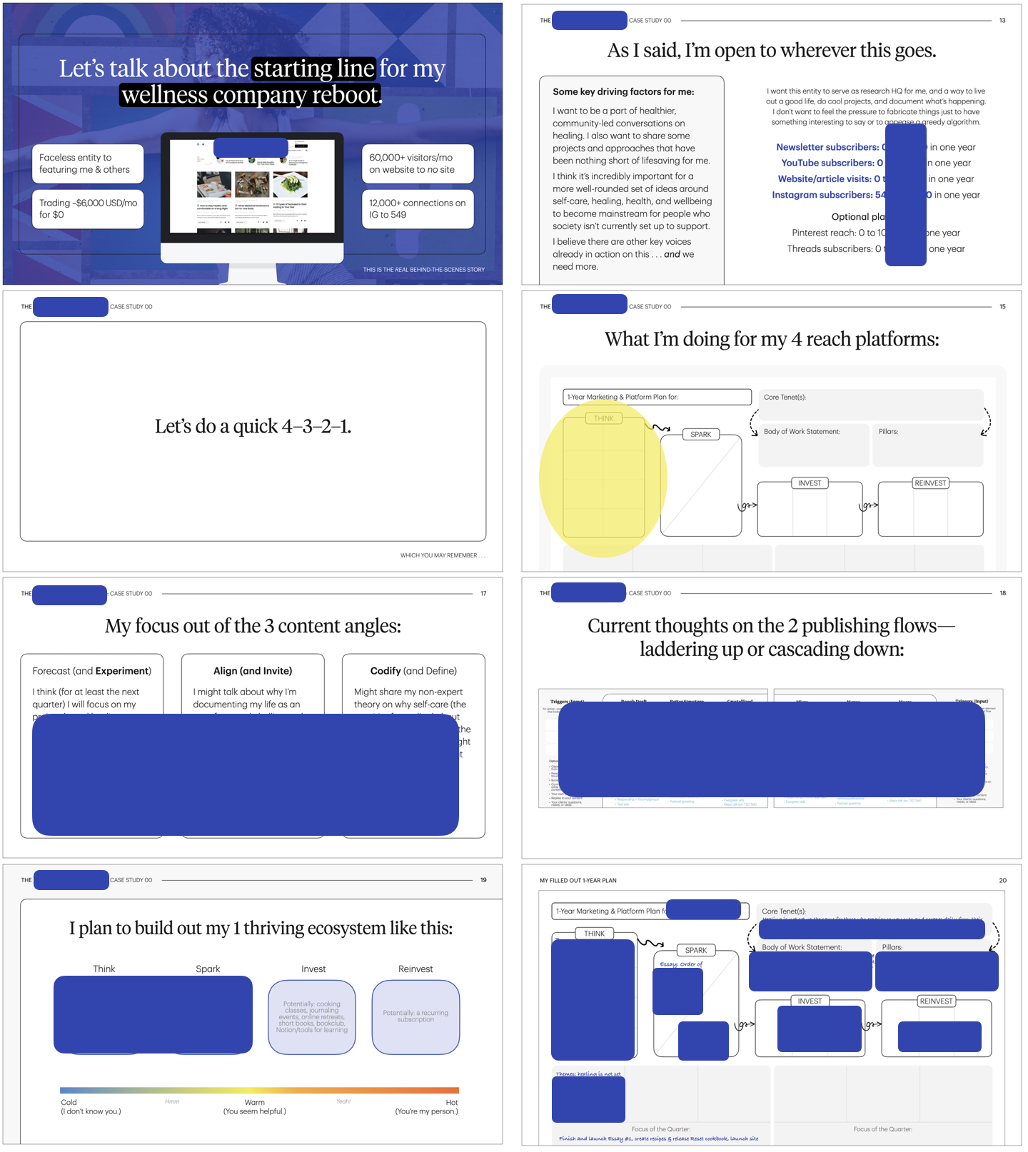 Right now, in your dashboard is Case Study 00 (The Starting Line Report), but each month I’ll add a new one as I experiment with various methods to grow the reach of my ideas for my wellness entity.