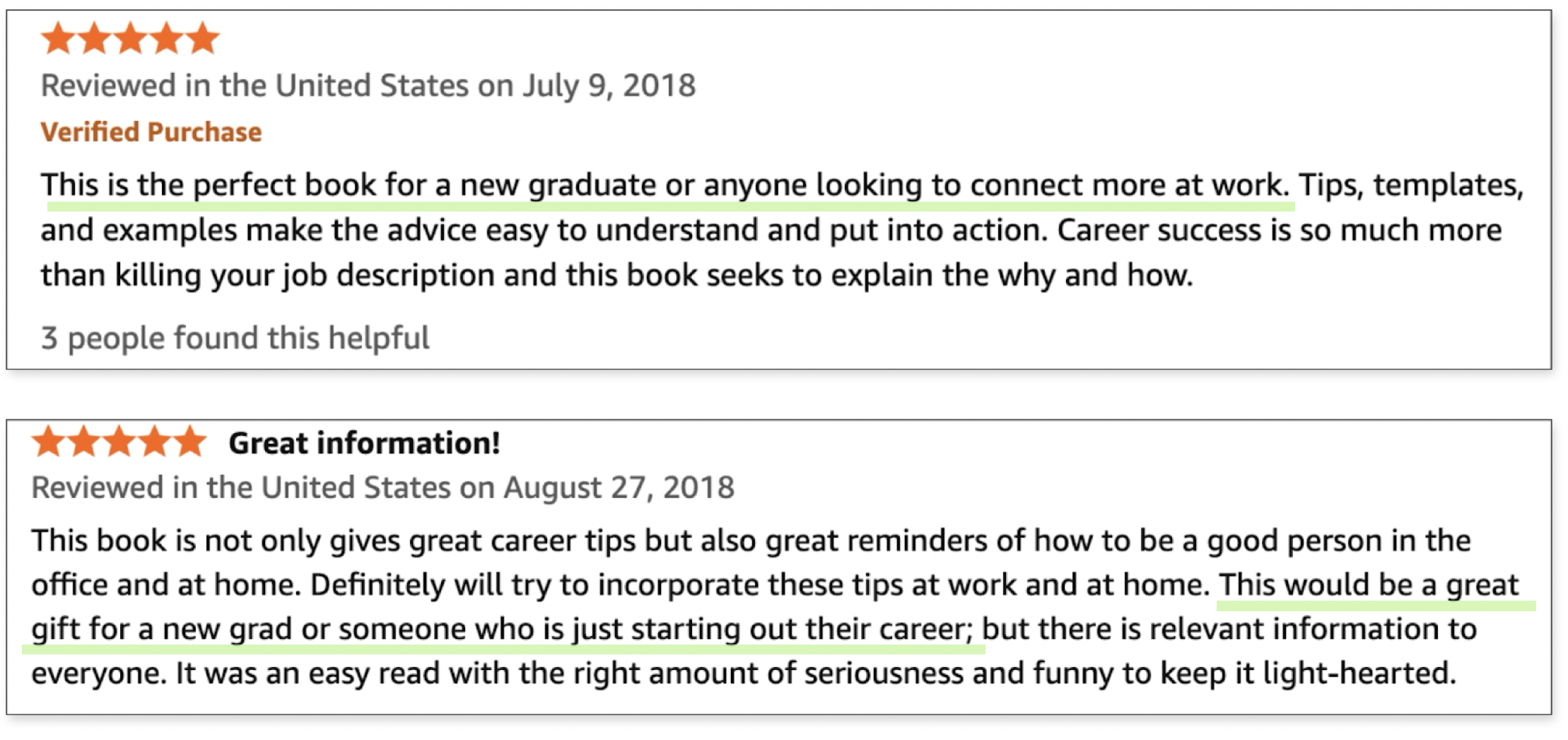Another one of my clients had the experience of getting her book picked up by a corporation who wanted to gift a copy to their whole team and all new hires. Many of the people who left reviews for her book highlighted that it was a go-to guide for anyone early in their career—which was the exact thing she’d designed it for.
